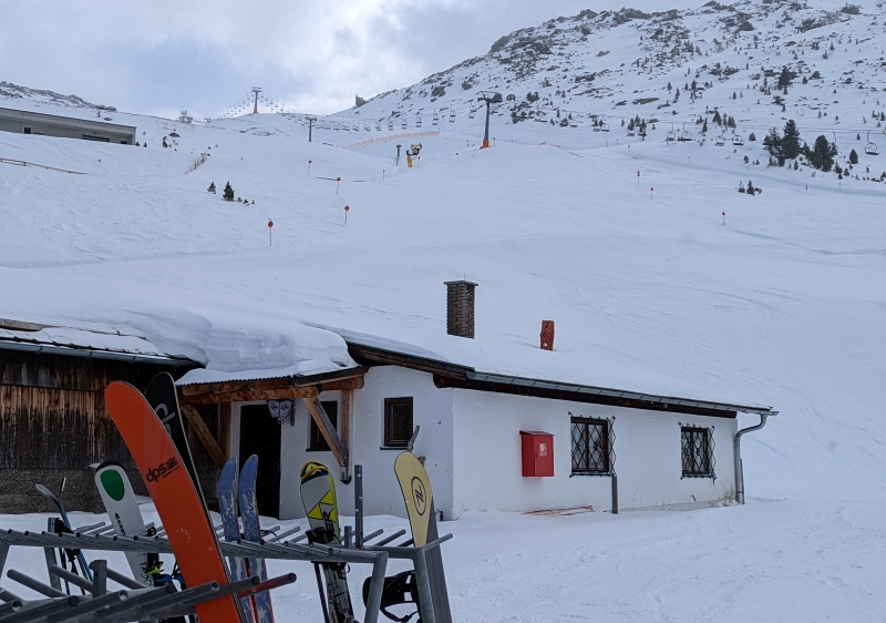 , we reckon a visit to the alpine hut would be a real highlight of a Glungezer visit. There looks to be a nice 600m vertical freeride descent back into the Schartenkogel lift base from the hut. We scoped out a few full-on off-piste freeride descent possibilities from Schartenkogel top station into the Voldertal (the next valley to the east), but local knowledge is required to ski tour back to the gondola base in Tulfes and we didnt have the time.