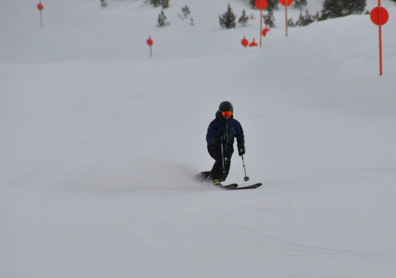 Piste trails are mostly intermediate in pitch and north-aspect providing excellent quality for fast turns. Low crowds during the week ensure groomers stay fresh all day or, as we found it, morning powder on the piste is there until after lunch! The off-piste options are more extensive than at first appears. From the top of the resort at Schartenkogel, traversing skiers right provides access to a mass of alpine & light tree terrain which ends back on the groomed piste #2 below Tulfein. Skiers left of piste #5 provides additional variants. Tree skiing would be possible all the way to the base in a cold, deep season (rare these days but tracks were evident in parts!).