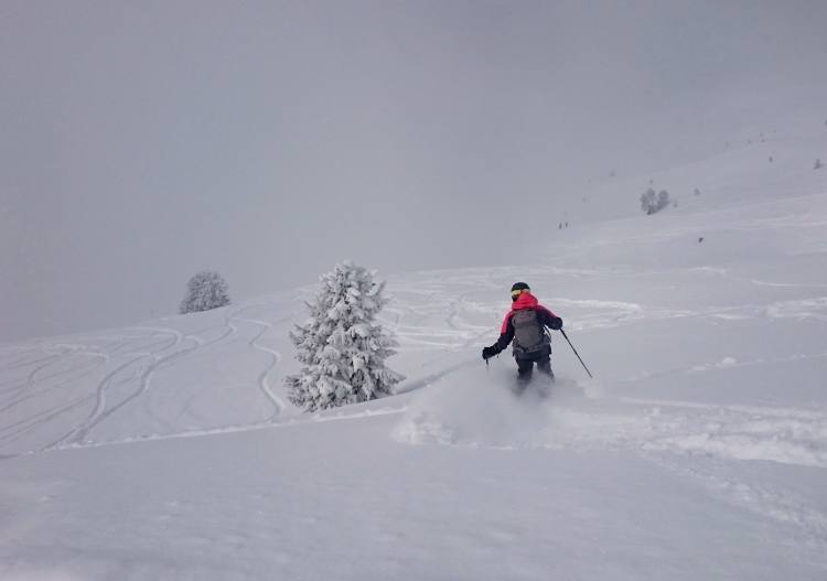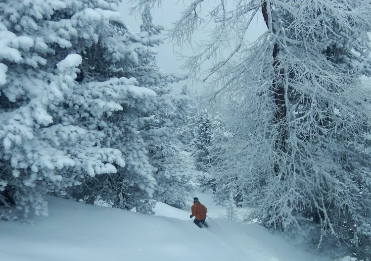 Piste trails are perfectly prepared, but the advanced trails are only upper intermediate at best. Loads of powder simply lays about between the trails unsullied by passersby. All the more for us!