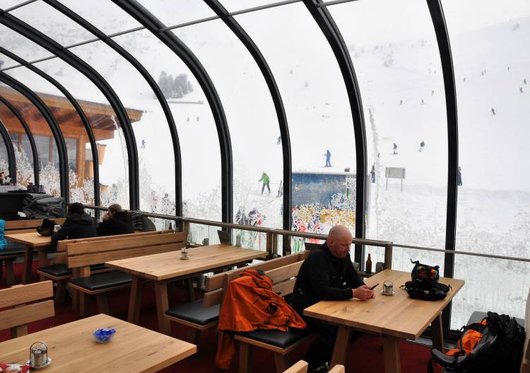 The Hochzeiger resort village above Jerzens is compact and has a full range of services, eateries, bars and accommodation. The lift system works well servicing all the terrain without too many navigational issues, even in poor visibility. From the top of the gondola, the terrain is served by 3 main chairlifts. Another old chair and a T-bar are superfluous to skiing the area. Major facilities at Mittel Station include a maze of seating areas & eateries from where most of the ski hill can be scoped on a clear day.