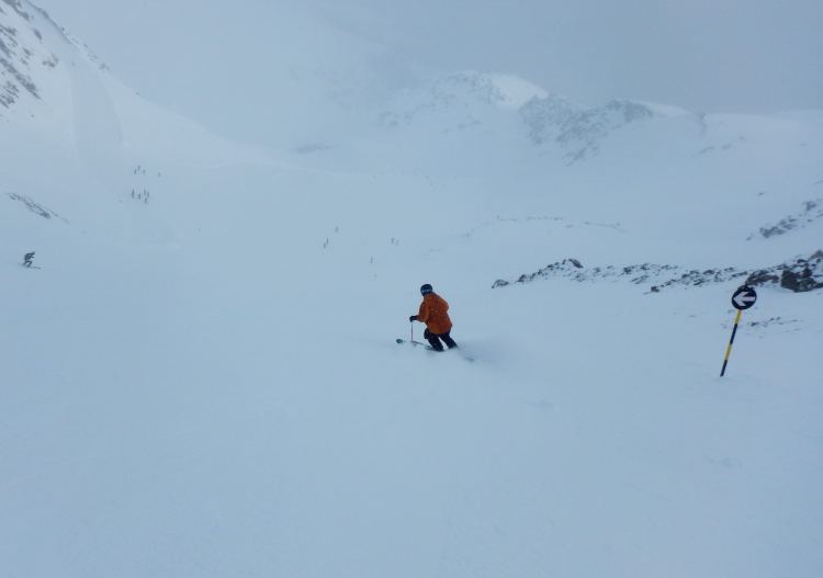 Snow quality during & after the storm was better than at nearby Obergurgl Hochgurgl, simply due to the terrain aspect - Soelden is oriented more to the east & Obergurgl to the west. The views across to Soelden the next day when skiing Obergurgl were phenomenal.