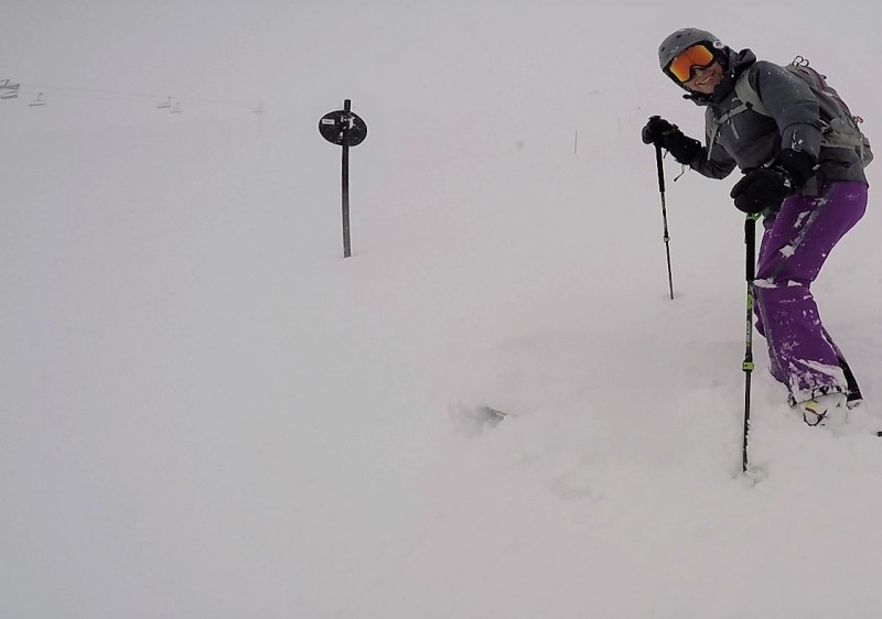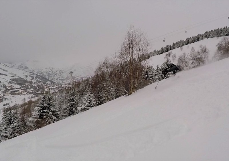 We love going to places that still have fresh turns (in albeit tracked powder) 5 days after the previous snowfall. And to find it easily in a major ski area is even better. And that the intervening 5-days included a full weekend of pillaging speaks volumes. Says there are relatively low numbers pillaging the powder at Les Deux Alpes. Thought the shaded north-aspect terrain (no surprise there!) into Pierre Grosse, La Fee or Thuit was the pick of it. Under the Pierre Grosse gondola is a big, challenging looking zone, which is actually alot mellower than it first appears. The skiable vertical (on or off-piste) is a lazy 1000m! We had the unexpected privilege of riding this brand-new gondola on its opening day, and what a lovely journey up it is. Scope the entry & routes to the best freeride terrain from the crystal-clear windows of the gondola on the way up. Get a guide if unsure but if snow conditions are stable, the basic routes should hold few fears.