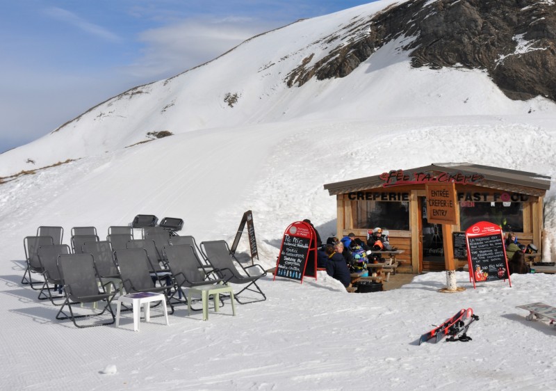 At the end of the day, a variety of après ski venues are slopeside at the village. Slopeside near the Oeufs Blancs gondola base, we enjoyed the Bivouac. It does cheap happy hour 50cl bieres from 1600hr.Tables with fires in the middle are always a treat! Then move down to Crepes à GoGo. A spectacular interior is coupled with fantastic service, biere & crepes of all descriptions.