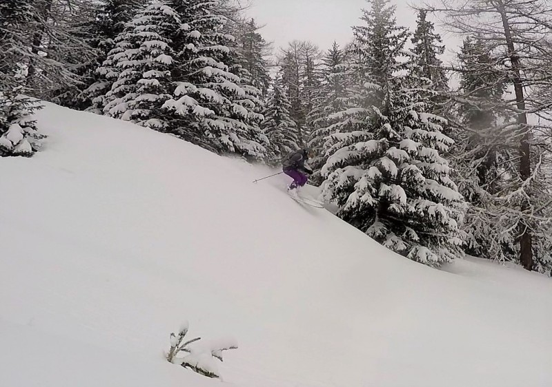 The best place to ski during winter storms in the Haute Maurienne, Val Cenis spans a wide part of the valley with north to south-westerly aspected slopes providing sub-alpine and forested freeride terrain that will suit all off-piste ski abilities. The 6-seater Arcellins chair serves a broad scope of mixed alpine, sub-alpine, forest & gullies, whilst avoiding the sometimes painfully long, flat journey all the way to the bottom of the resort. The highest lifts in the eastern sector of the resort [Met (2800m), Solert (2540m) & the old Plan Cardinal 2-seater all have similar alpine/sub-alpine off-piste providing lovely turns on a reasonably mellow pitch when the snow is fresh.