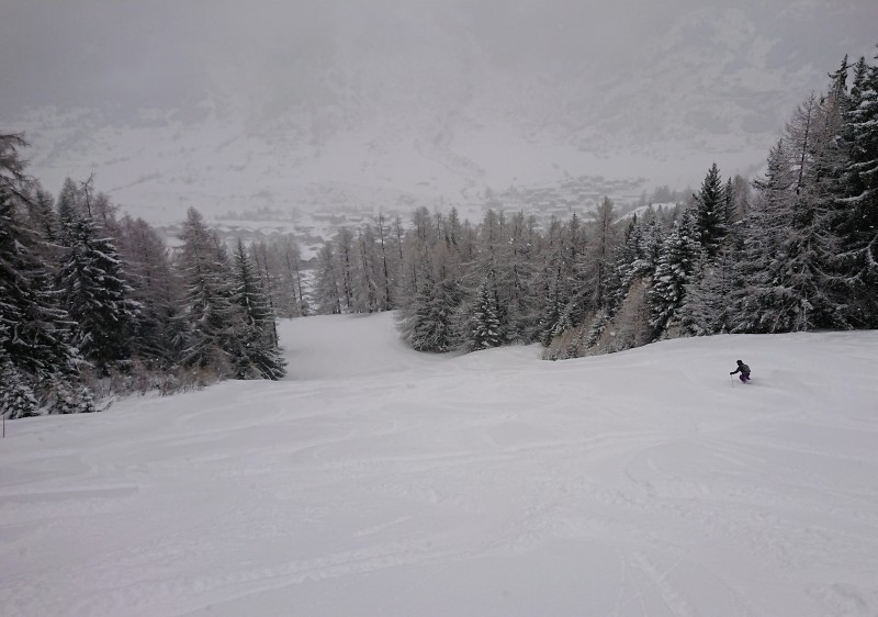 For those lovers of groomers, Val Cenis has plenty to like, particularly for novices, beginners & intermediates. Lower tree-lined runs allow for comfortable turns during storms and the snow-covered summer road up to Mont Cenis provides the perfect learning slope for anyone new to sport, as well as a guaranteed easy exit for more adventurous folk like us, smashing through the gullies & trees above the road. Advanced on-piste trails at Val Cenis are light grey at best, so not particularly challenging. The gondolas & modern hooded chairs serving the lower mountain right along the valley make it easy for everyone to get up the hill in comfort.