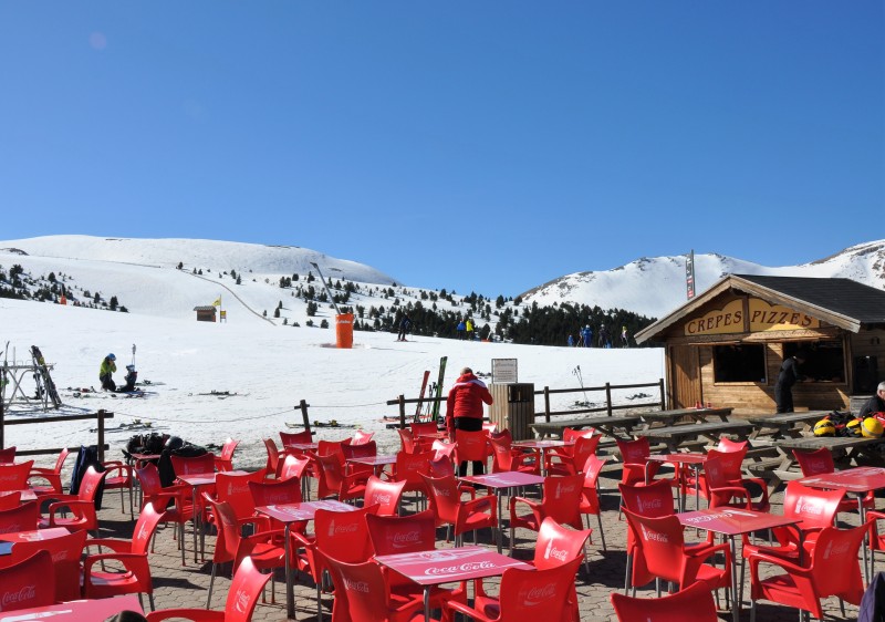 Well, what to make of this intriguing combination of ski resorts. First and foremost, we must put out there that whilst the Pyrenees can get loads of snow in some seasons (sometimes more than the Alps), its southern European location makes booking a ski holiday here a somewhat questionable proposition. It is more of a “snow has fallen, let’s go now” kinda ski destination. We visited in mid-February & for us it was a case of, “the sun is shining, the weather is hot, there is bugger-all snow, but we are going anyway!” And we do love the idea of a ski hill that serves up superb anchovies ……….. doesn’t everyone? Aaah, Spain.
