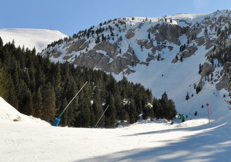 Of the two sides, Masella is the pick for us. Truly excellent piste terrain combining pitch, roll, shelter & north-aspect for better snow quality, plus the better steep alpine terrain from La Tosa. La Molina’s trails seemed to have a lot less snow, less pitch, less length & overall, less interest. With some decent snow on the ground there would be worthy tree-skiing here, but alas …… Both ski area’s have quite good novice & beginner zones, but they are heaving with people when the sun is out.