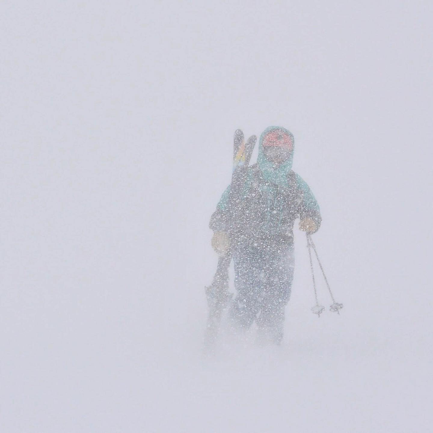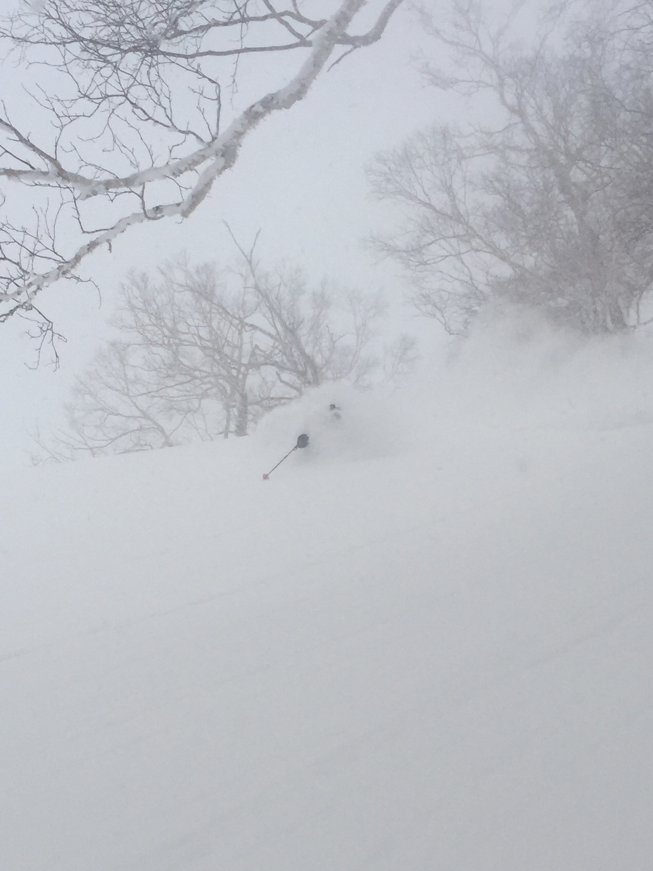 We headed out in white out conditions from the top of the ropeway (get there early...), traversed terrain and accessed an amazing aspect. Steep enough (I hit 60kph in pow...) and ultra deep. Faceshots all day. We broke a skin track, and had the place to ourselves.