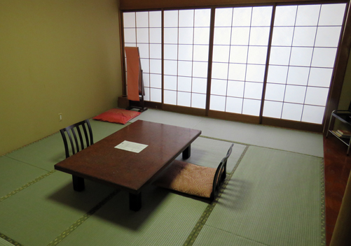 Kougakuro is a ryokan (Japanese inn) so the rooms are traditional Japanese style with tatami mat flooring, futons on the floor, and a table with seats on the floor. Each room has a TV if you want to watch Japanese game shows, and simple tea making facilities. The rooms have a washbasin and private toilet, and some rooms also have a shower, although you’ll more than likely have an onsen in the public bathhouse instead.